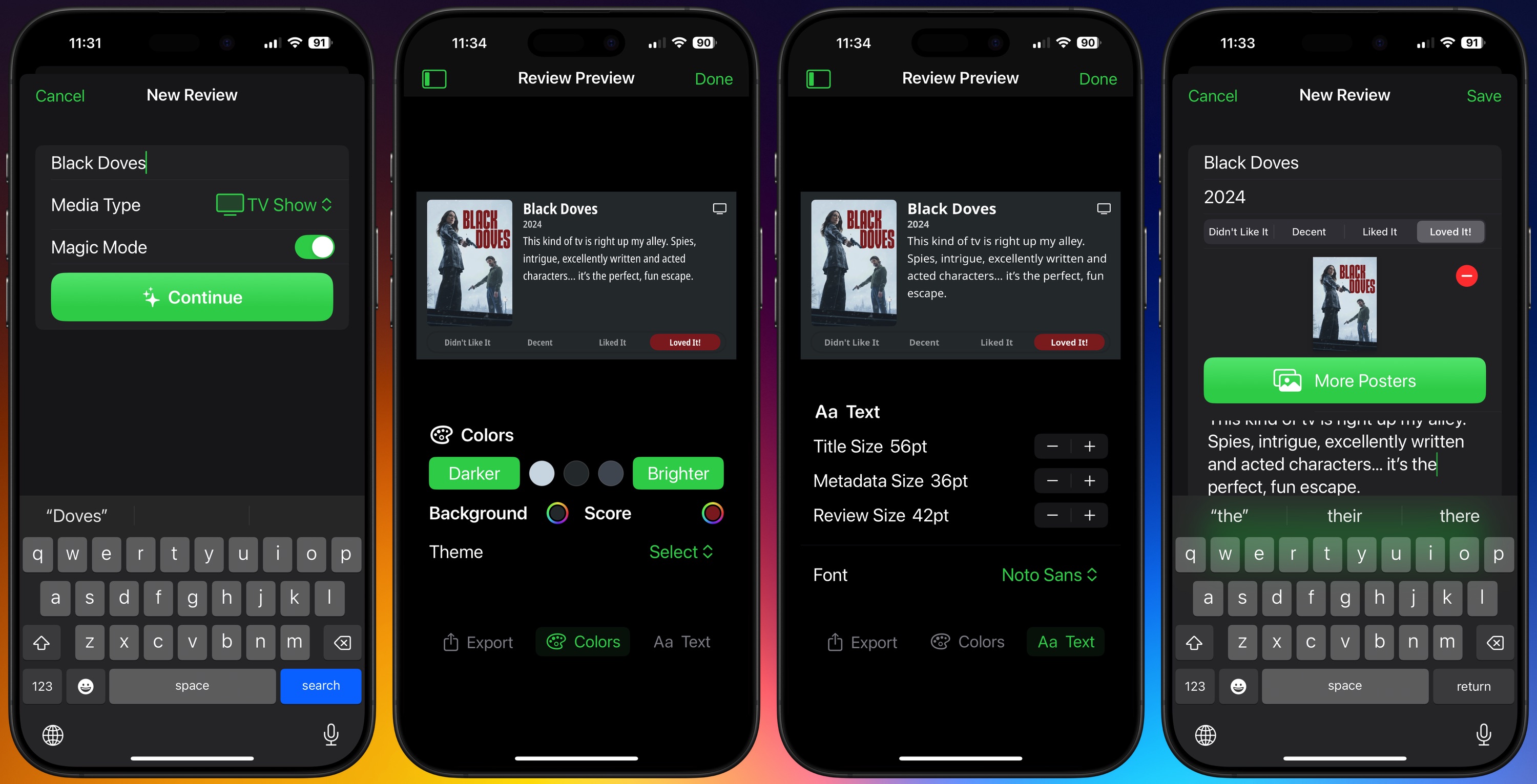 Next, edit the image colors for background and rating highlight, edit the font and font styles, and save or export the image. In my case, I use export and share and then AirDrop it to my Mac.
