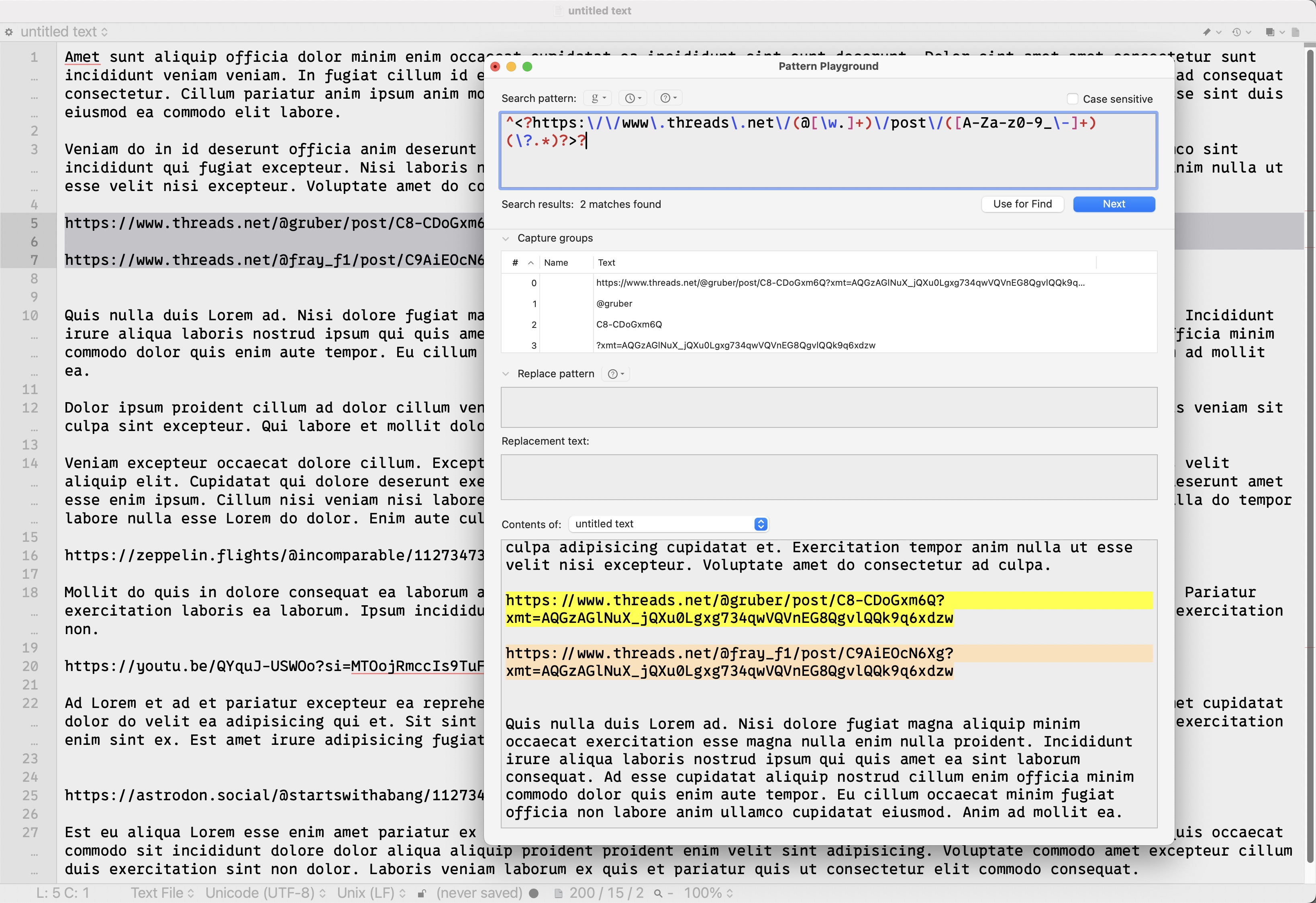These may change as I encounter variations of the different URLs for each service. These are rev 2 of the Threads and YouTube regular expressions, for example.