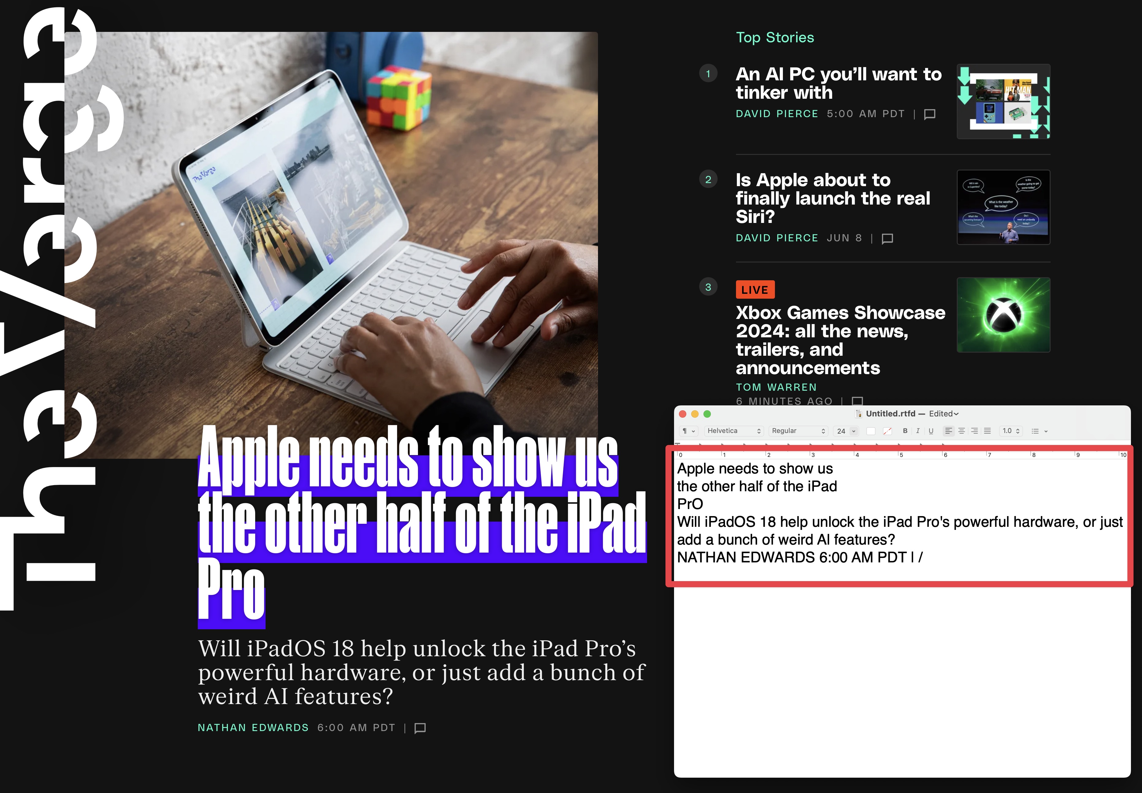 Let’s say I have a screenshot of the title of The Verge’s recent iPad Pro article, for some inexplicable reason.