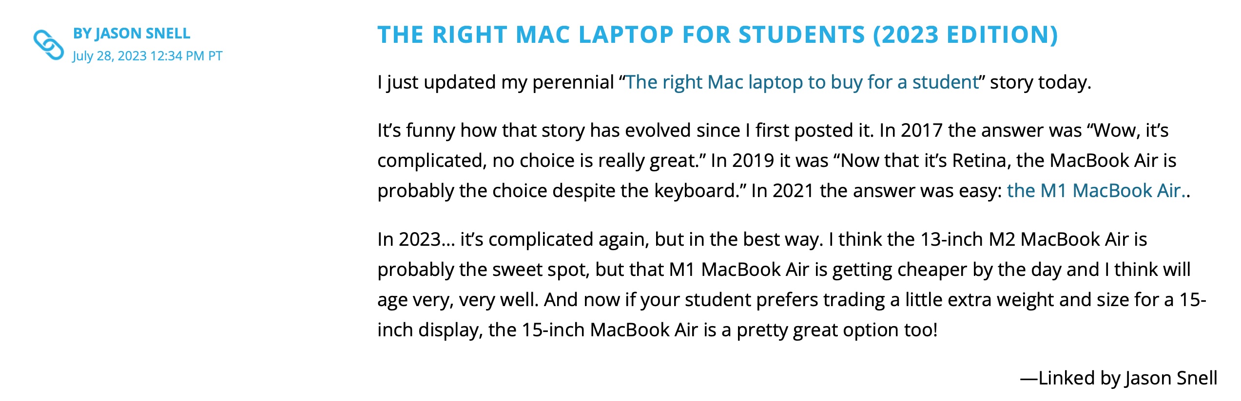 You’ve seen link posts before, certainly so if you read a lot of Mac related blogs like Daring Fireball, SixColors, or MacStories. The idea is the title of the post links to an article on another site, and then you add some commentary and maybe quote part of the article in your post.